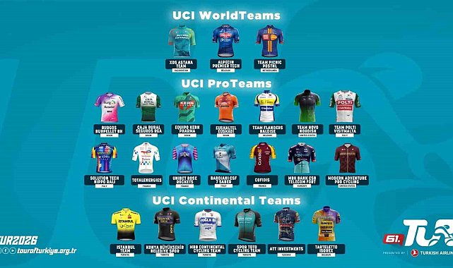 61. Cumhurbaşkanlığı Türkiye Bisiklet Turu'nda mücadele edecek takımlar duyuruldu.23 takım, 27 ülkeden 161 sporcunun mücadele edeceği 61. Cumhurbaşkanlığı Türkiye Bisiklet Turu, 26 Nisan-3 Mayıs tarihleri arasında Çeşme'den Ankara'ya dünya bisikletinin en güçlü ekiplerini ve yıldız isimlerini Türkiye'de bir araya getirmeye hazırlanıyor. Yarış boyunca; 5 il, 20'nin üzerinde ilçe, 60'tan fazla yerleşim geçilerek Türkiye'nin doğal ve kültürel zenginliği dünya sahnesine taşınacak.8 gün, 8 etapta büyük yolculuk; 26 Nisan'da Çeşme-Selçuk (148,7 km) etabıyla başlayacak, 27 Nisan'da Aydın-Marmaris (152,8 km) ile devam edecek. 28 Nisan'da Marmaris-Kıran (132,7 km) zirve finişiyle ilk büyük tırmanış sahne alacakken, 29 Nisan'da Marmaris-Fethiye (130,4 km) etabı Akdeniz kıyılarında ilerleyecek. 30 Nisan'da Patara Antik Kenti'nden Kemer'e uzanan 180,7 kilometrelik uzun etapla mücadele derinleşecek. 1 Mayıs'ta Antalya-Feslikan (127,9 km) zirve finişli Kraliçe Etap, genel klasman dengelerini belirleyecek; 2 Mayıs'ta Antalya-Antalya (152,8 km) etabı sprinterlere fırsat sunacak. 3 Mayıs'ta Ankara-Ankara (105,2 km) final etabıyla yarış tamamlanacak.Dünya bisikletinin güçlü pelotonu Türkiye'deTUR 2026'da 3 WorldTeam, 14 ProTeam, 6 Continental Team kategorisinde toplam 23 UCI Takım ve 27 farklı ülkeden 161 sporcu mücadele edecek. TUR 2026'da mücadele edecek takımlar arasında Türkiye'yi temsil eden 4 Kıta Takımı yer alacak.61. Cumhurbaşkanlığı Türkiye Bisiklet Turu takım listesi şöyle:UCI WorldTeam kategorisi:XDS Astana Team (Kazakistan), Alpecin-Premier Tech (Belçika), Team Picnic PostNL (Hollanda)UCI ProTeam kategorisi:Burgos-Burpellet-BH (İspanya), Caja Rural-Seguros RGA (İspanya), Equipo Kern Pharma (İspanya), Euskaltel-Euskadi (İspanya), Team Flanders-Baloise (Belçika), Team Novo Nordisk (ABD), Team Polti VisitMalta (İtalya), Solution Tech Nippo Ralli (İtalya), TotalEnergies (Fransa), Unibet Rose Rockets (Fransa), Bardiani CSF 7 Saber (İtalya), Cofidis (Fransa), MBH Bank Ballan CSB (Macaristan), Modern Adventure Pro Cycling (ABD)UCI Continental Team kategorisi:İstanbul Team (Türkiye), Konya Büyükşehir Belediye Spor (Türkiye), Muğla Büyükşehir Belediyesi Spor Kulübü (Türkiye), Spor Toto Cycling Team (Türkiye), ATT Investments (Çekya), Tarteletto-Isorex Team (Belçika)Türk takımları sahneye çıkacakTürkiye'yi temsil eden 4 uluslararası kıta takımı bu yıl da Cumhurbaşkanlığı Türkiye Bisiklet Turu'nda olacak. Türk bisikletinin yükselen yıldızlarından Serdar Anıl Depe'nin (SporToto) yanı sıra Türk bisikletinin simge ve deneyimli isimlerinden Ahmet Örken (SporToto) 2026 yılında 13. kez start alarak TUR tarihinde en fazla katılım gösteren Türk bisikletçi ünvanını alacak. Konya Torku Şeker Spor'un aynı zamanda TOHM kadrosunda yer alan ve pist ile yol bisikletinde Avrupa'da kürsü elde eden sporcuları Ramazan Yılmaz ve Mustafa Tarakçı ile son olimpiyatlarda Türkiye'yi temsil eden Burak Abay ile de genel klasman ve klasman mayoları için mücadele edecek.Team Istanbul ekibinde, 2013 Türkiye Turu şampiyonu Natnael Berhane önderliğinde dünyaca ünlü Eritreli bisikletçi Biniam Girmay'ın kardeşi Mewael Girmay, Afrika Uluslar şampiyonasını ikinci sırada tamamlayan Awet Aman, 2024 Türkiye Turu genel klasman dördüncüsü Metkel Eyob ve geçtiğimiz sezonu pro seviyede tamamlayan Çekyalı sprinter Tomas Barta yer alacak.TUR'a bu yıl ilk kez katılan Muğla Büyükşehir Belediyesi Spor Kulübü, Samet Bulut, Mehmet Kanat, Halil ibrahim Doğan, genç pedal Arda Tekirdağ'ın yanı sıra, sprint etaplarında takıma liderlik edecek Kazak pedal Rudolf Remkhi, ilk Türkiye Turu'nda başarı arayacak.Lider formalar zirveye taşıyacak61. Cumhurbaşkanlığı Türkiye Bisiklet Turu'nda lider formalar, bu yıl da sponsorlarıyla birlikte yarışın simgesi olacak. Türk Telekom sponsorluğundaki turkuaz forma genel klasman liderine, Spor Toto sponsorluğundaki yeşil forma sprinterlere, Türk Hava Yolları sponsorluğundaki kırmızı forma 'Dağların Kralı'na verilecek. TGA - GoTürkiye iş birliğiyle sunulan beyaz forma ise 'Türkiye Güzellikleri' klasmanının liderini temsil edecek. 26 Nisan - 3 Mayıs tarihleri arasında 8 etap ve 1.133,5 kilometrelik parkurda sporcular, bu formalar için mücadele edecek.