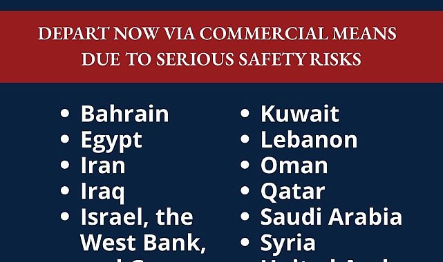 ABD Dışişleri Bakanlığı, 16 ülke ve bölgede bulunan vatandaşlarına "ciddi güvenlik riskleri" nedeniyle bulundukları yerleri ticari yollarla derhal terk etmeleri uyarısında bulundu.