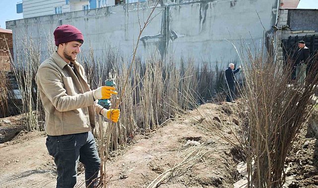 Bitlis'in Ahlat ilçesinde havaların ısınmasıyla birlikte satışa sunulan meyve fidanları yoğun ilgi görüyor.