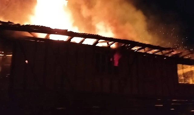 Ahşap ev alev alev yandı
