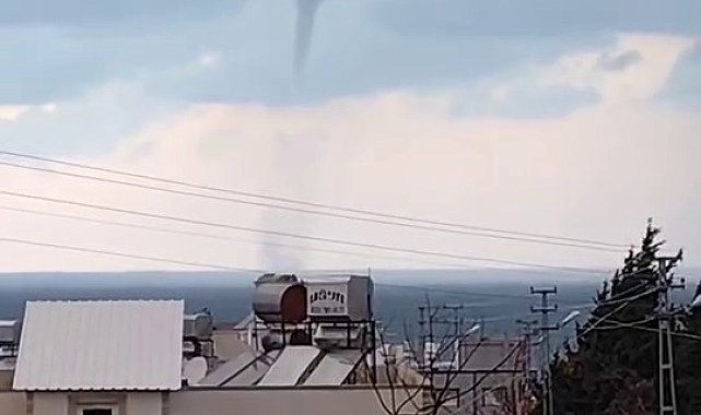 Hatay'ın Arsuz ilçesinde Akdeniz'de oluşan hortum cep telefonuyla görüntülendi.Meteorolojinin uyarıda bulunduğu kuvvetli yağış ve fırtına, Doğu Akdeniz'de sabah saatlerinden etkili olmaya başladı. Arsuz ilçesinde deniz üzerinde oluşan hortum, kıyıdaki vatandaşlar tarafından cep telefonuyla görüntülendi. Deniz yüzeyinde kendini gösteren hortum, karaya ulaşmadan gözden kayboldu.