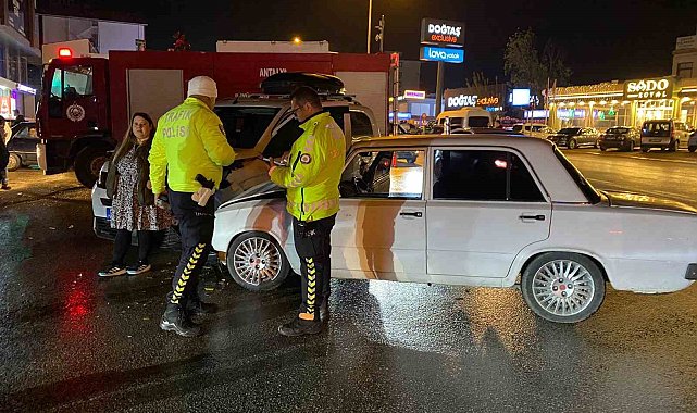 Antalya iki otomobilin çarpıştığı ve 3 kişinin yaralandığı kaza anı kamerada