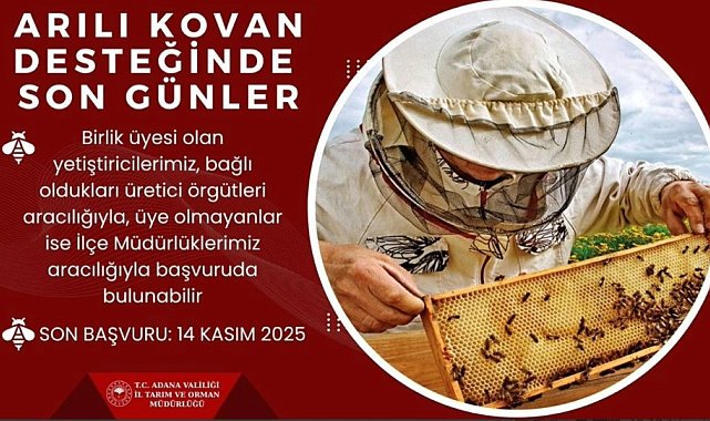 Adana İl Tarım ve Orman Müdürlüğü, arılı kovan desteği almak isteyen üreticiler için 'son gün' çağrısı yaptı.
