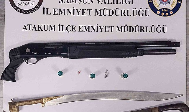 Samsun'un Atakum ilçesinde polis ekiplerince yapılan uygulamada ruhsatsız silah ve kılıç ele geçirilirken, 1 şahıs hakkında adli işlem başlatıldı.
