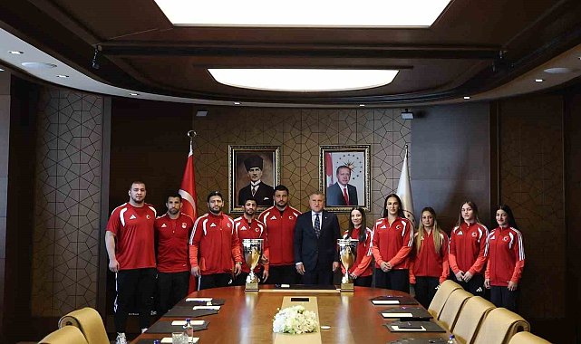 Gençlik ve Spor Bakanı Osman Aşkın Bak, Avrupa Şampiyonası'nda 11 madalya kazanan milli güreşçileri kabul etti.
