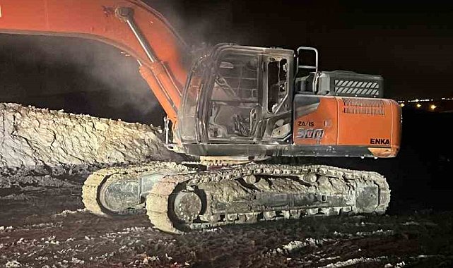 Batman Oymataş OSB şantiyesinde iş makinesi yakıldı
