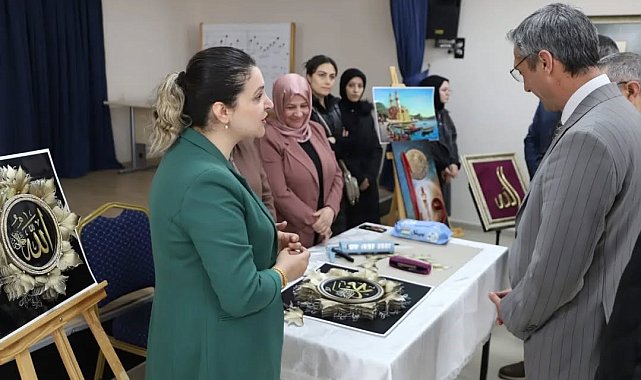 Bayburt Halk Eğitimi Merkezinde, Mevlid-i Nebi Haftası dolayısıyla 'Sevginin Diliyle Değerlerimiz' temalı el sanatları sergisi açıldı.Türkiye Yüzyılı Maarif Modeli Erdem-Değer-Eylem Modeli kapsamında hazırlanan sergide hat, tezhip, ebru ve çeşitli el sanatları çalışmaları yer aldı. Sevgi, merhamet, adalet, sabır ve şefkat gibi değerlerin sanat yoluyla yansıtıldığı eserler, ziyaretçilerin beğenisine sunuldu.Programa, İl Milli Eğitim Müdürü Ömer Faruk Kahraman da katıldı. Kahraman, sergi alanını gezip, kursiyerler tarafından hazırlanan çalışmaları inceledi.