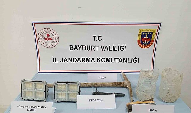 Bayburt'un Aydıntepe ilçesine bağlı Yukarıkırzı köyünde bulunan birinci derece sit alanında izinsiz kazı ve define araştırması yaptığı belirlenen 4 şüpheli, jandarma ekiplerince yakalandı.
