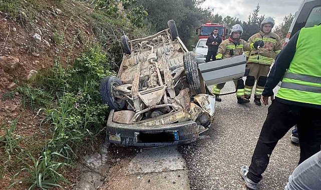 Hatay'da sürücüsünün kontrolünü kaybetmesiyle takla atarak, ters dönen otomobildeki 2 kişi yaralandı.