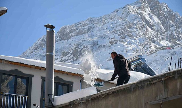 Beytüşşebap'ta damlarda biriken kar temizleniyor