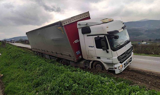 Bilecik'in Osmaneli ilçesinde direksiyon hakimiyetini kaybeden tırın şarampole düşmesi sonucu trafik kazası meydana geldi.Edinilen bilgilere göre, Osmaneli ilçesine bağlı Bereket köyü mevkii Karatekin köyü kavşağında Bursa'nın İznik ilçesi istikametine seyir halinde olan Enis Ç. idaresindeki 34 LR 2756 plakalı tır, sürücüsünün bir anlık dikkatsizliği sonucu direksiyon hakimiyetini kaybederek şarampole düştü. Çevredeki vatandaşlar tarafından 112 Acil Çağrı Merkezi'ne yapılan ihbar üzerine olay yerine ekipler sevk edildi. Öte yandan kazada sürücü Enis Ç.'nin yaralanmadığı öğrenilirken, araçta maddi hasar meydana geldi. Kazanın ardından yol trafiğe tek şerit olarak sağlandı.Olayla ilgili inceleme başlatıldı.