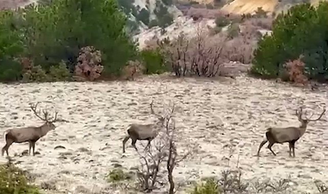 Bolu'da koruma altındaki kızıl geyikler görüntülendi