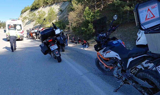 Bolu'nun Mudurnu ilçesine gezi için gelen motosiklet grubunda peş peşe yaşanan kazalarda 1'i ağır 2 kişi yaralanırken, bir köpek de telef oldu.