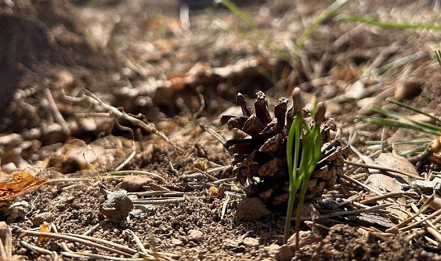 Bolu'nun Mudurnu ilçesinde Orman İşletme Müdürlüğü tarafından yürütülen Karaçam Doğal Gençleştirme çalışmaları kapsamında sahalarda çimlenmelerin başladığı gözlemlendi.