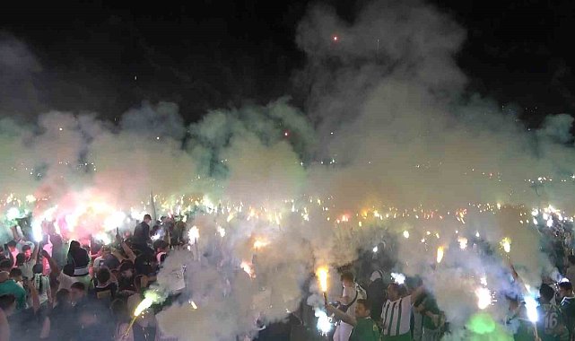 Bursaspor 62. kuruluş yıldönümünü binlerce taraftarıyla meşaleler yakarak kutladı.Bursaspor taraftarı 62. kuruluş yıldönümünde eski Atatürk Stadyumu olan Bursa Millet Bahçesi'nde bir araya geldi. Binlerce taraftar mabetlerinde şarkılar ve besteler söyleyerek şampiyon olarak TFF 2. Lig'e çıkan takımlarını destekledi. Saat 21.16'da işaret fişeklerinin gökyüzüyle buluşmasının ardından binlerce kişi yanlarında getirdikleri meşaleleri yakarak geceyi aydınlattı. Taraftarların meşaleleri adeta görsel şölen oluşturdu."Bursaspor 700 bin nüfuslu Bursa'da doğdu"Eski bakan Faruk Çelik, "62 yıl önce Bursa'nın nüfusu 700 bindi. 700 bin nüfuslu Bursa, Bursaspor'u doğurdu. Kuruluşunun ardından 1967 yılında Süper Lig'e çıktı. O günden bu güne çok önemli başarılar elde etti. Sizin yaşlarınızdayken Muradiye sırtlarından Bursaspor'u izledim. Ne zaman ki imkan sahibi olduk, o zaman çıktık Bursaspor'un önüne düştük. 2008-2009'da Bursaspor'a entrika çekenlere şampiyon olarak cevap verdik. Destek veren herkese teşekkür ediyorum. Ölü taklidi yapanlara haydi Süper Lig'e diyoruz" şeklinde konuştu.