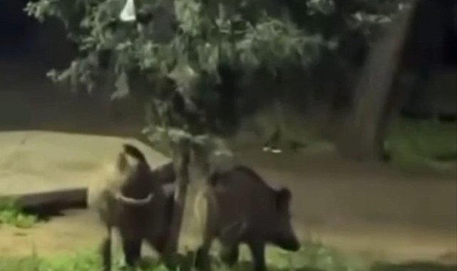 Bursa'da akşam saatlerinde Bursa Kent Ormanı'nda yaşanan olay, piknik yapan vatandaşları hem şaşırttı hem de tedirgin etti.Kent ormanındaki piknik alanında vakit geçiren vatandaşlar, bir anda alana inen iki yaban domuzuyla karşılaştı. İnsanların bulunduğu noktaya kadar yaklaşan domuzlar, kısa süreli panik yaşanmasına neden oldu.Domuzlar bir süre çevrede dolaştıktan sonra piknik alanındaki çeşmeye yöneldi. Çeşmeden su içen yaban domuzları, daha sonra gözden kaybolarak ormanlık alana geri döndü.O anlar çevrede bulunan vatandaşlar tarafından cep telefonu kameralarıyla kaydedildi.