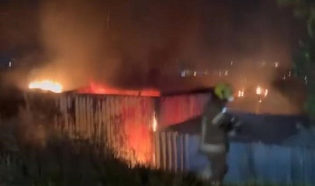 Bursa'da gece yarısı konteynır alevlere teslim oldu