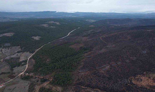 Bursa'da yakın tarihin en büyük orman yangınlarından birisi olan ve yaklaşık bir hafta süren Temmuz ayındaki Harmancık yangınında 6 bin futbol sahası büyüklüğünde 4 bin 240 hektar orman küle dönerken, burada yaralar kısa sürede sarıldı. Aralık 2025'te yanan alanların yeniden yeşillendirilmesi için tohum atma, teras oluşturma ve fidan dikim çalışmalarında devasa işler yapıldı. Harmancık'ta Bursa'dan İtalya'ya uzanacak mesafe kadar yani 2 bin 327 kilometre teras ilmek ilmek işlendi. 1 milyon 617 bin 921 fidan toprakla buluşturulurken, 17 bin kilogram tohum ekildi. Bölgedeki son durum ise İHA ekibi tarafından dron ile havadan görüntülendi.2025 Temmuz sonlarında başlayan ve bir hafta süren Harmancık'taki yangın Orhaneli ilçesini de etkiledi. Buradaki yangında 4 bin 240 hektar orman zarar gördü, binlerce canlı hayatını kaybetti.Harmancık ilçesine bağlı Çakmak Mahallesi'nde kilometrelerce alanın küle döndüğü, yeşilin yerini gri ve siyah tonların almasından kısa bir süre sonra, Bursa Orman Bölge Müdürlüğü ekipleri harekete geçti. Kısa sürede bölgede yürütülen iyileştirme çalışmaları dikkat çekti. Yangından zarar gören alanlarda 970 hektar tabi tensil, 2 bin 153 hektar suni tensil, bin 87 hektar ağaçlandırma ve 99 hektar rehabilitasyon çalışması gerçekleştirildi. Kısa sürede yapılan çalışmalar kapsamında 1 milyon 617 bin 921 fidan toprakla buluşturulurken, 17 bin kilogram tohum ekildi.En dikkat çeken detay ise yapılan teras çalışmaları oldu. Toplamda 2 bin 327 kilometre uzunluğunda teras inşa edilirken, bu mesafe yaklaşık olarak İtalya ile Bursa arasındaki 2 bin 398 kilometrelik uzaklığa neredeyse denk geliyor. Uzmanlar, bu büyüklükteki bir çalışmanın erozyonla mücadele ve yeniden yeşillendirme açısından kritik önem taşıdığına dikkat çekti.Bölge sakinleri ise tüm bu çalışmalara rağmen doğanın eski haline dönmesini sabırla beklediklerini belirterek, ağaçlandırma faaliyetlerinin devam etmesini istiyor. Dron ile kaydedilen görüntüler, bir yandan felaketin izlerini hatırlatırken, diğer yandan yürütülen yoğun rehabilitasyon çalışmalarını da gözler önüne serdi.