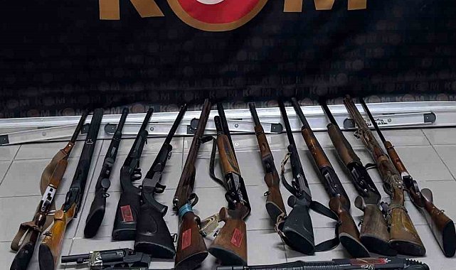 Bartın'da polis ekipleri bir iş yerine düzenlediği baskında 30 adet tüfek ve tabanca ele geçirdi.