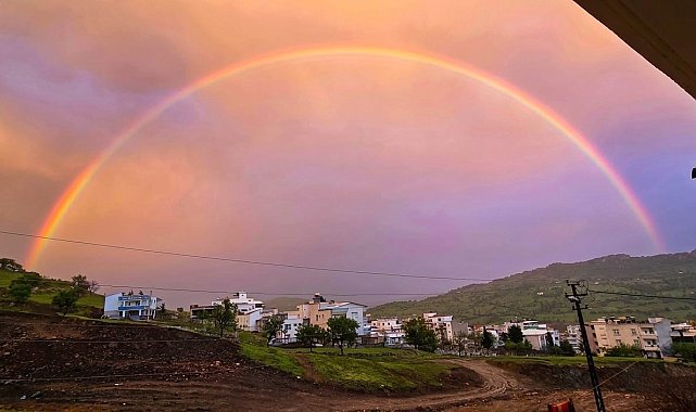 Diyarbakır'ın bu yıl en fazla yağış alan ilçelerinden Çermik'te, yağmur sonrası oluşan gökkuşağı, görsel bir şölen oluşturdu.
