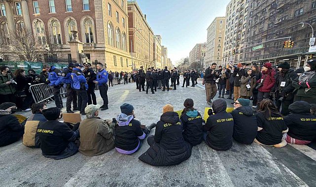 ABD'nin New York kentinde Columbia Üniversitesi önünde Trump yönetiminin göçmenlik politikalarını protesto eden yüzlerce öğrenci eylem düzenledi. Üniversite önündeki yolu trafiğe kapatan yaklaşık 10 protestocu, New York Polis Departmanı'na (NYPD) bağlı polisler tarafından gözaltına alındı.ABD'de Trump yönetiminin Göçmenlik ve Gümrük Muhafaza Birimi'ne (ICE) yönelik uygulamalarına tepkiler sürerken, New York'taki Columbia Üniversitesi öğrencileri de kampüs önünde geniş katılımlı bir protestoya imza attı. Soğuk havaya rağmen yüzlerce öğrencinin katıldığı gösteride, üniversite yönetiminin ICE ile iş birliği yaptığı iddiaları gündeme getirildi. Protestocular, Columbia Üniversitesi'nin öğrenci ve akademik topluluğu korumakta yetersiz kaldığını savundu. Üniversite önünde toplanan öğrenciler, "ICE OUT" yazılı pankartlar taşıyarak ICE aleyhine sloganlar attı. Gösteri boyunca "ICE'ı kapatın" çağrıları sık sık tekrarlandı. Protestocular, Trump yönetiminin göçmenlik politikalarının kampüsler üzerinden meşrulaştırılmaya çalışıldığını ileri sürdü.Üniversite yönetimine sert suçlamalarDağıtılan bildirilerde, Columbia Üniversitesi yönetiminin öğrenci protestocuların gözaltına alınması sürecinde ICE ile iş birliği yaptığı iddia edildi. Bildirilerde, üniversitenin Columbia topluluğunu korumakta defalarca başarısız olduğu ve öğrencileri riske attığı vurgulandı. Açıklamalarda ayrıca, 3 binden fazla öğretim üyesi ve araştırmacıdan oluşan sendikanın, Columbia'nın "sığınak kampüs" olarak ilan edilmesi ve vatandaş olmayan çalışanlar için iş sözleşmelerine koruyucu maddeler eklenmesi yönündeki taleplerinin yönetim tarafından reddedildiği belirtildi. Protestocular, yükseköğretim kurumlarının federal baskılara karşı ilk savunma hattı olması gerektiğini savunarak, Columbia'nın bu rolü yerine getirmediğini ifade etti.Trafiği kapatan protestocular gözaltına alındıGösteri sırasında yaklaşık 10 kişilik bir grup, üniversite önündeki yola oturarak trafiği durdurdu. NYPD ekiplerinin defalarca yaptığı uyarılara rağmen yolu açmayan protestocular, polis tarafından gözaltına alındı. Gözaltı işlemleri sırasında çevrede geniş güvenlik önlemleri alındı.