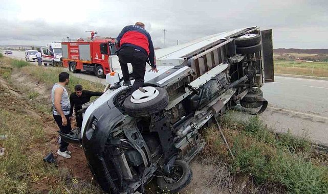 Çorum'da devrilen kamyonetin sürücüsü yaralandı