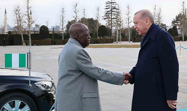 Cumhurbaşkanı Recep Tayyip Erdoğan, Nijerya Cumhurbaşkanı Bola Ahmed Tinubu'yu törenle karşıladı.Konuk Nijerya Cumhurbaşkanı Bola Ahmed Tinubu'nun içinde bulunduğu makam aracını Cumhurbaşkanlığı Külliyesi'nin önündeki caddede karşılayan süvariler, Bola Ahmed Tinubu'ya protokol kapısına kadar eşlik etti. Cumhurbaşkanı Erdoğan, Tinubu'yu Cumhurbaşkanlığı Külliyesi'nin ana giriş kapısında karşıladı. Erdoğan ve Ahmed Tinubu tören alanındaki yerlerini almalarının ardından, 21 pare top atışı eşliğinde iki ülkenin milli marşları çalındı. Tinubu, Muhafız Alayı Tören Kıtası'nı 'Merhaba Asker' diyerek selamladı. Törende, tarihte kurulan 16 Türk Devletini temsil eden bayraklar ve askerler de yer aldı. Heyetlerini birbirine takdim eden Erdoğan ve Tinubu merdivenlerde Türkiye ve Nijerya bayrakları önünde gazetecilere poz verdi.Erdoğan ve Tinubu, ikili görüşmenin ardından heyetler arası görüşmeye geçti. Görüşmelerin sonrasında iki liderin ortak basın toplantısı düzenlemesi bekleniyor.Törende, Dışişleri Bakanı Hakan Fidan, Milli Savunma Bakanı Yaşar Güler, Sanayi ve Teknoloji Bakanı Mehmet Fatih Kacır, Enerji ve Tabii Kaynaklar Bakanı Alparslan Bayraktar, İçişleri Bakanı Ali Yerlikaya, Aile ve Sohbet Hizmetler Bakanı Mahinur Özdemir Göktaş, Ticaret Bakanı Ömer Bolat, MİT Başkanı İbrahim Kalın, İletişim Başkanı Burhanettin Duran ve Ankara Valisi Vasip Şahin de yer aldı.