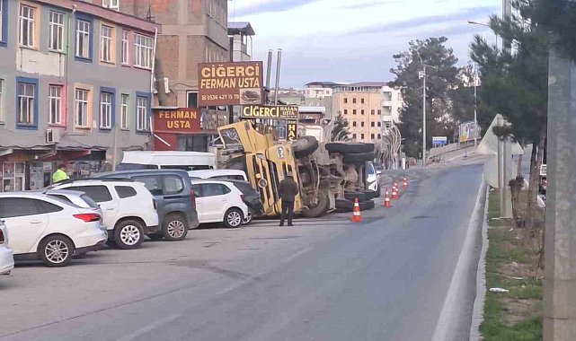 Diyarbakır'ın Silvan ilçesinde seyir halindeki saman yüklü tır, devrilerek park halindeki 7 araca çarptı.