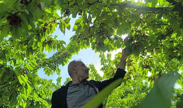 Erzurum'un Uzundere ilçesi Balıklı Mahallesi'nde yaşayan Mustafa Güngör, 12 dönümlük kiraz bahçesinde bu yıl da self servis kiraz toplama geleneğini sürdürüyor.
