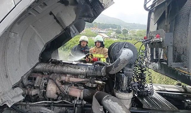 Hatay'da seyir halindeyken motor kısmı alevlere teslim olan tırda çıkan yangın, kontrol altına alındı.Yangın; Payas-Dörtyol istikameti otoyol üzerinde yaşandı. Seyir halindeki tırın motor kısmında yangın çıktı. İhbar üzerine olay yerine sevk edilen itfaiye ekipleri, yangına hızlı şekilde müdahale etti. Yangın, aracı sarmadan kontrol altına alınırken, olayın ardından tırda soğutma çalışması gerçekleştirildi.