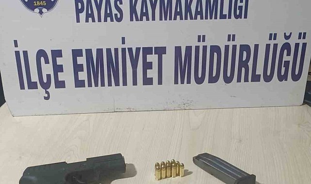 Hatay'ın Payas İlçesinde polisin şüphe üzerine durdurduğu 2 şahsın üzerinden ruhsatsız tabanca ve bıçak çıktı.Hatay Emniyet Müdürlüğü ekipleri il genelinde asayiş operasyonlarını aralıksız sürdürüyor. Payas ilçesi Cumhuriyet Mahallesinde polis asayiş ekiplerinin durumlarından şüphelenerek durdurulan R.A. ile Ş.K.'nın yapılan üst aramasında; 1 adet ruhsatsız tabanca, 1 adet şarjör, 1 adet bıçak ele geçirildi. Olayla ilgili olarak 2 şahıslar gözaltına alınarak karakola götürüldü.