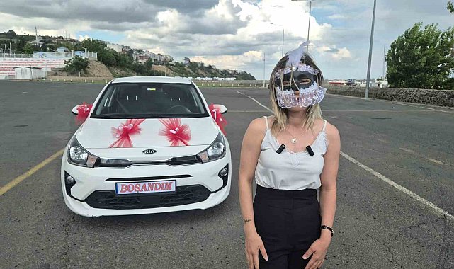 Tekirdağ'ın Süleymanpaşa ilçesinde eşinden boşanan bir kadın, yüzünü maske ile kapatarak arabasını süsleyip şehirde "Boşandım, mutluyum" turu attı.