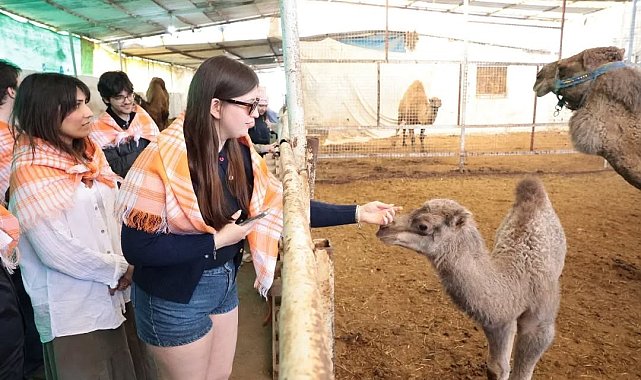 Estonya'dan gelen üniversite öğrencileri Aydın'ın İncirliova ilçesinde deve çiftliğinde incelemelerde bulunup, deve sütü içti.