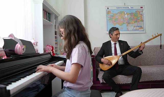 Evde öğrenim gören öğrenciye bağlamalı destek: Minik Nursima'nın piyano resitaline müdür bağlamasıyla eşlik etti