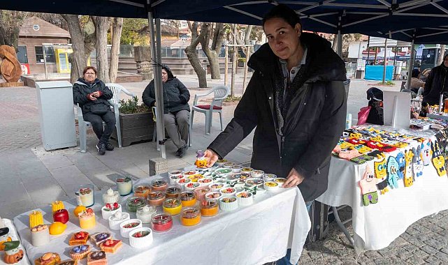 Evinde ürettiği estetik mumları stantta vatandaşlarla buluşturuyor