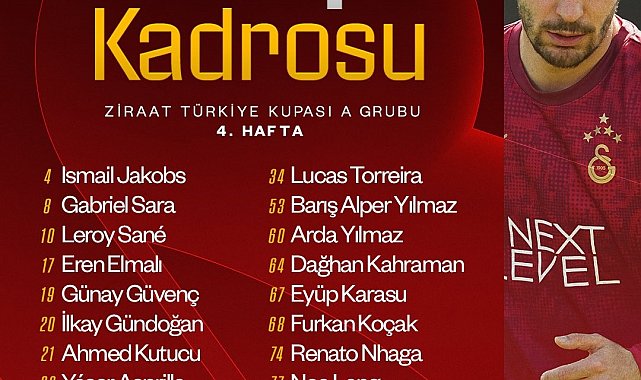 Ziraat Türkiye Kupası A Grubu 4. ve son hafta maçında yarın deplasmanda Corendon Alanyaspor ile karşılaşacak Galatasaray'ın maç kadrosu belli oldu.Galatasaray, Ziraat Türkiye Kupası'nda yarın deplasmanda Corendon Alanyaspor ile oynayacağı maçın hazırlıklarını tamamlayarak Alanya'ya hareket etti. Sarı-kırmızılılarda bu müsabakanın kamp kadrosu da belli oldu. Kulüpten yapılan açıklamada, aktif dinlendirme amacıyla özel çalışmaya alınan Uğurcan Çakır, Davinson Sanchez, Abdülkerim Bardakcı, Victor Osimhen ve Mario Lemina'nın yanı sıra hafif ağrıları bulunan ve risk alınmak istenmeyen Roland Sallai, Yunus Akgün ve Mauro Icardi'nin Alanyaspor maçı kamp kadrosuna alınmadı.Galatasaray'ın kamp kadrosunda şu isimler yer alıyor:Ismail Jakobs, Gabriel Sara, Leroy Sane, Eren Elmalı, Günay Güvenç, İlkay Gündoğan, Ahmed Kutucu, Yaser Asprilla, Kaan Ayhan, Can Armando Güner, Gökdeniz Gürpüz, Lucas Torreira, Barış Alper Yılmaz, Arda Yılmaz, Dağhan Kahraman, Eyüp Karasu, Furkan Koçak, Renato Nhaga, Noa Lang, Wilfried Singo, Sacha Boey.
