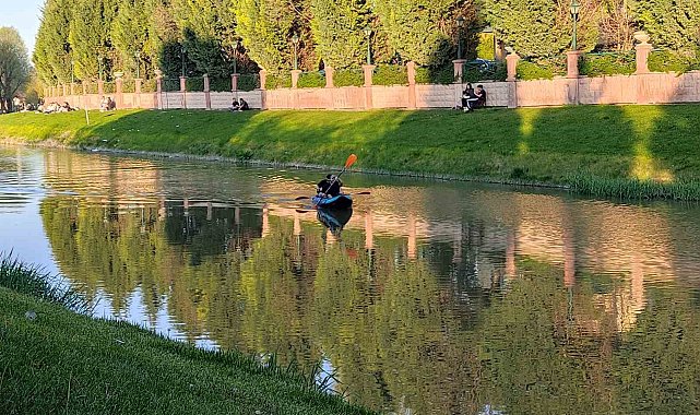 Eskişehir'in yeşiliyle bilinen duraklarından biri olan Kanlıkavak Parkı'nda bir araya gelen gençler, Porsuk Çayı üzerinde kano yaparak güzel havanın tadını çıkardı.Eskişehir'in Odunpazarı ilçesinde bulunan ve eşsiz doğasıyla bilinen Kanlıkavak Parkı'nda iskeleden kanolarıyla suya açılan iki genç, Porsuk Çayı boyunca kürek çekerek keyifli anlar yaşadı.
