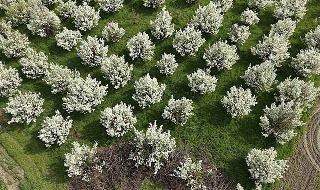 Bursa'nın İnegöl ilçesinde baharın gelişiyle birlikte çiçek açan meyve ağaçları adeta görsel şölen oluşturdu. İlçenin dört bir yanındaki bahçelerde açan beyaz ve pembe çiçekler, doğanın uyanışını en güzel haliyle gözler önüne serdi.Özellikle kırsal mahallelerde yoğun olarak bulunan meyve bahçeleri, adeta gelinlik giymiş gibi bembeyaz bir örtüye bürünürken, ortaya kartpostallık manzaralar çıktı. Havaların ısınmasıyla birlikte çiçek açan ağaçlar, hem üreticilere yeni sezonun umutlarını yeşertti hem de doğaseverlerin ilgisini çekti.Oluşan eşsiz manzaralar drone ile havadan görüntülendi. Kuşbakışı kaydedilen görüntülerde, kilometrelerce uzanan çiçekli bahçeler adeta bir tabloyu andırdı. Doğanın renk cümbüşünü yansıtan görüntüler, izleyenleri kendine hayran bıraktı.Bölgede özellikle şeftali, erik, kiraz ve elma ağaçlarının çiçek açtığı bu dönemin kısa sürdüğünü belirten üreticiler, bu güzelliğin her yıl sadece birkaç hafta görülebildiğini ifade etti. Baharın müjdecisi olan bu görüntüler, aynı zamanda bereketli bir sezonun da habercisi olarak değerlendiriliyor.İnegöl'de her yıl bahar aylarında oluşan bu doğal güzellikler, hem fotoğraf tutkunlarının hem de doğayla iç içe vakit geçirmek isteyen vatandaşların uğrak noktası haline geliyor. Drone ile kaydedilen görüntüler ise bölgenin doğal zenginliğini bir kez daha gözler önüne serdi.İnegöl Çetilkçi Tarımsal Kalkınma Kooperatifi Başkanı Selahattin Dumanlar, Türkiye'nin en iyi şeftali ve armut bahçelerinde ağaçların çiçek açtığını belirtti.Dumanlar, "Geçen sene iklim şartları nedeniyle rekoltede düşüş vardı, çiçeklenme olmadı. Çiçeklenme olduğunda da don olayı oldu ve rekolte düşüktü. Bu yıl şuana kadar bir don olayı olmadı, çiçeklenme odu. Arılarda bu sırada çok güzel çalıştı, döllenme, tozlanma olayını gerçekleştirdi. Bu sene güzel bir rekolte bekliyoruz. Bu rekolte olursa üreticiler olarak, gerekli bakımları yaptıktan sonra güzel bir hasat yapı milletimize ve ülke ekonomisine destek vermeyi hedefliyoruz" dedi.İnegöl İsaören Tarımsal Kalkınma Kooperatifi Başkanı Erhan Ulu ise "Bu yıl don olayları yaşanmadı. Yağışlar istediğimiz ve çiftçimizin mutlu olacağı seviyelerde. 2026 yılı hasat sezonunun bol ve bereketli olacağına inanıyoruz. Bu yıl bölgemizde ki yağılar ve iklimsel denge meyve ve sebzelerde bolluk olacağına işaret. Geçtiğimiz yıl iklimsel faktörler nedeniyle ihracatta istediğimiz hedefe ulaşamadık. Ancak bu aylarda hem tarımsal ilaçlama çalışmalarını başlatırken hem de ihracat odaklı çalışmalarımız başladı. 2026 yılı tüm çiftçimize bereketli olsun" dedi.