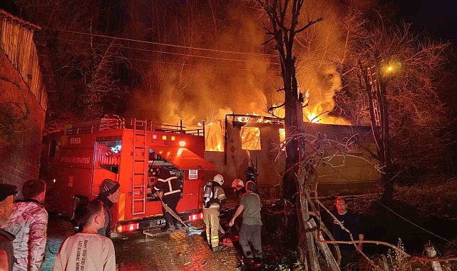 İnegöl'de tek katlı ev alev alev yandı