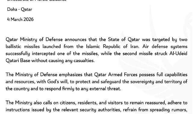 Katar Savunma Bakanlığı'ndan yapılan açıklamada, İran'dan fırlatılan 2 balistik füzeden birinin ABD tarafından kullanılan El-Udeid Hava Üssü'ne isabet ettiği, ancak saldırıda herhangi bir can kaybı yaşanmadığı bildirildi. El-Udeid Hava Üssü, ABD'nin Orta Doğu bölgesindeki en büyük askeri üssü olarak biliniyor.