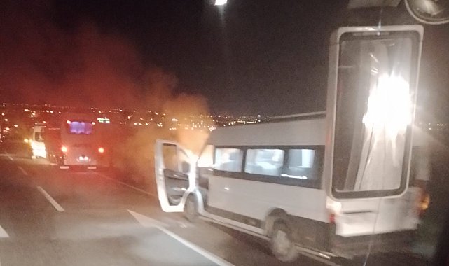 Tekirdağ'ın Ergene ilçesinde işçileri taşıyan servis minibüsünde yangın çıktı.