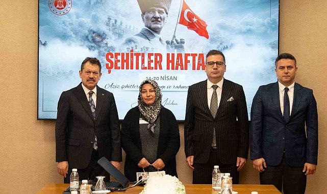 İzmir Adliyesi'nde, 14-22 Nisan Şehitler Haftası kapsamında düzenlenen programda adliyenin çeşitli birimlerinde görev yapan şehit yakınları ağırlandı.