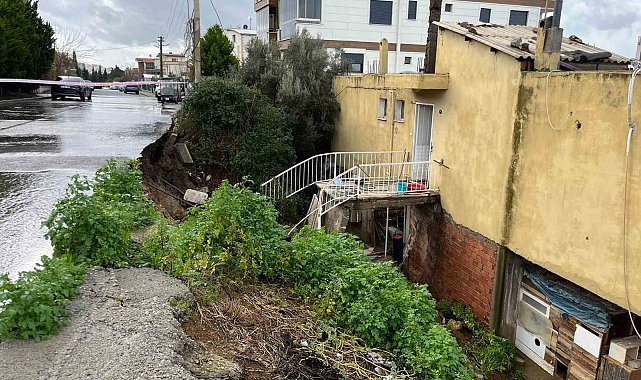 İzmir'in Aliağa ilçesinde etkili olan yağışlar nedeniyle bir evin istinat duvarı çöktü. Olayda can kaybı yaşanmazken, müstakil iki katlı ev tedbir amaçlı boşaltıldı.Edinilen bilgilere göre, Yalı Mahallesi Atilla İlhan Sokak üzerinde bulunan iki katlı müstakil bir evin istinat duvarı, yoğun yağışların etkisiyle yıkıldı. İhbar üzerine bölgeye itfaiye, polis ve Aliağa Belediyesi ekipleri sevk edildi. İstinat duvarının çökmesi sonucu evin giriş kısmı kapanırken, içeride mahsur kalan 3 kişi itfaiye ekipleri tarafından güvenli şekilde tahliye edildi. Olayın ardından ev, muhtemel risklere karşı tedbir amacıyla tamamen boşaltıldı.Ekipler, çevrede güvenlik önlemleri alırken cadde de geçici olarak trafiğe kapatıldı.