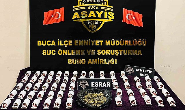 İzmir'in Buca ilçesinde polis ekipleri tarafından uyuşturucu madde ticareti ve imalatına yönelik düzenlenen operasyonda 3 bin 478 adet sentetik ecza ile 150 gram esrar ele geçirilirken, olayla ilgili bir şüpheli şahıs gözaltına alındı.İl Emniyet Müdürlüğüne bağlı Buca İlçe Emniyet Müdürlüğü ekipleri, ilçe genelinde uyuşturucu madde ticaretini önlemeye yönelik çalışmalarını sürdürüyor. Edinilen bilgiye göre, ekiplerin Seyhan Mahallesi'nde yürüttüğü saha çalışmaları kapsamında F.G. isimli şüpheli şahsın adresine baskın yapıldı. Adreste gerçekleştirilen aramalarda 3 bin 478 adet sentetik ecza maddesi ile 150 gram esrar maddesi ele geçirildi. Operasyon kapsamında yakalanarak gözaltına alınan şüpheli şahıs, emniyetteki işlemlerinin tamamlanmasının ardından adli mercilere sevk edildi.