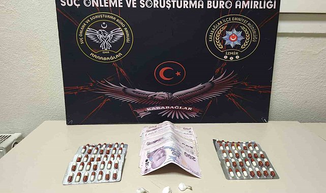 İzmir'de uyuşturucu madde ticareti yaptığı belirlenen ve hakkında 10 yıl kesinleşmiş hapis cezası bulunan bir şüpheli, polisin düzenlediği operasyonla yakalandı. Evinde uyuşturucu maddelerle yakalanan şüpheli gözaltına alındı.Karabağlar İlçe Emniyet Müdürlüğü Suç Önleme ve Soruşturma Büro Amirliğine bağlı ekipler, ilçe genelinde yürüttüğü çalışmalar kapsamında hedef bir şüpheliyi takibe aldı. Uyuşturucu madde satışı yaptığı tespit edilen U.Ç. (28) isimli şüphelinin uyuşturucuları sakladığı adres belirlenerek operasyon için düğmeye basıldı. Adrese yapılan baskında şüpheli şahıs yakalanarak etkisiz hale getirildi.Çok sayıda uyuşturucu madde ele geçirildiŞüphelinin ikametinde yapılan detaylı aramalarda 6 meşe halinde toplam 4,60 gram kokain ve 112 adet uyuşturucu hap ele geçirildi. Ele geçirilen uyuşturucu maddelere polis ekipleri tarafından el konulurken, şüpheli sorgulanmak üzere büro amirliğine götürüldü.10 yıl hapis cezası olduğu ortaya çıktıGözaltına alınan U.Ç. (28) hakkında yapılan UYAP sorgulamasında, şüphelinin uyuşturucu madde ticareti suçundan 10 yıl kesinleşmiş hapis cezası ile arandığı tespit edildi. Emniyetteki işlemleri tamamlanan şüpheli şahıs, uyuşturucu madde ticareti yapmak suçundan hazırlanan evraklarla birlikte mevcutlu olarak adli mercilere sevk edilecek.