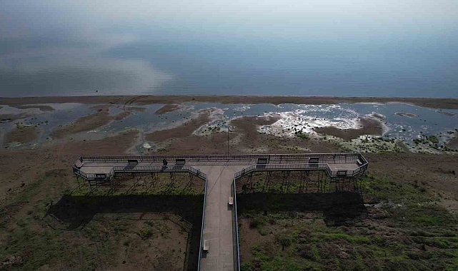 İznik Gölü'nde su çekilmesi alarm veriyor...İskele karada kaldı