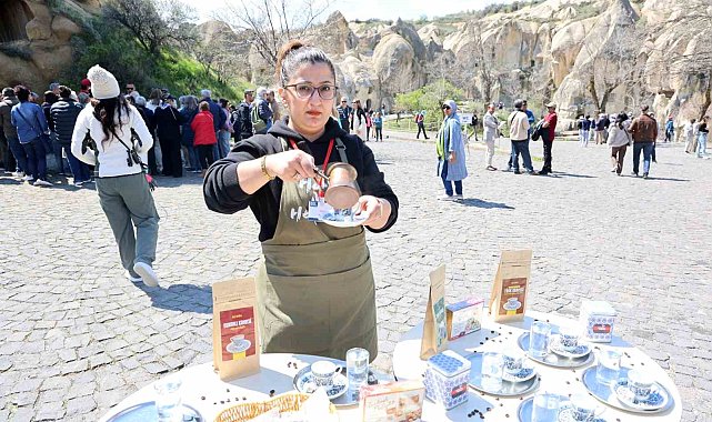 Turizm Haftası etkinlikleri kapsamında Kapadokya'da yerli ve yabancı turistlere Türk kahvesi ve lokum ikram edildi.