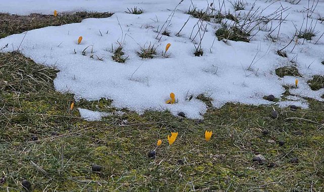 Kütahya'nın Radar bölgesinde kar ve çiğdemlerin aynı karede görüntülenmesi, ilginç manzaralar oluşturdu.