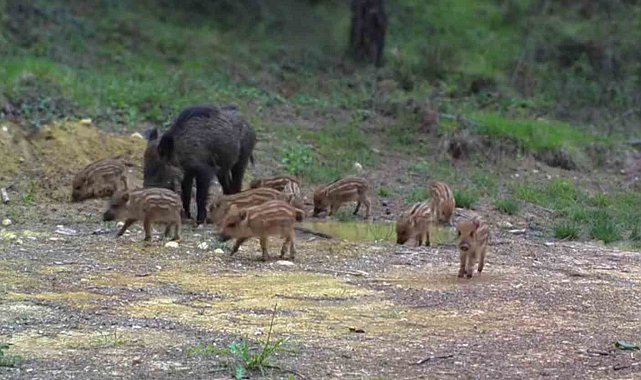 Karabük'te domuz ve 13 yavrusu fotokapanla görüntülendi