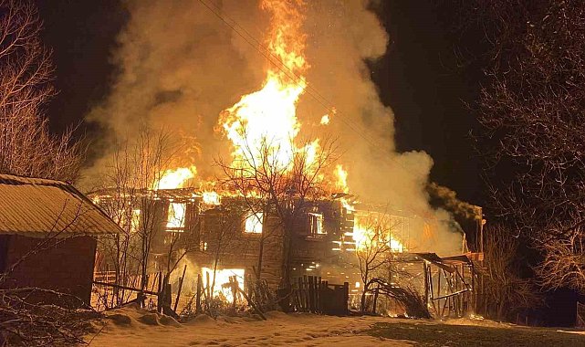 Karabük'ün Eflani ilçesinde çıkan yangında alevlere teslim olan iki katlı ev küle döndü.